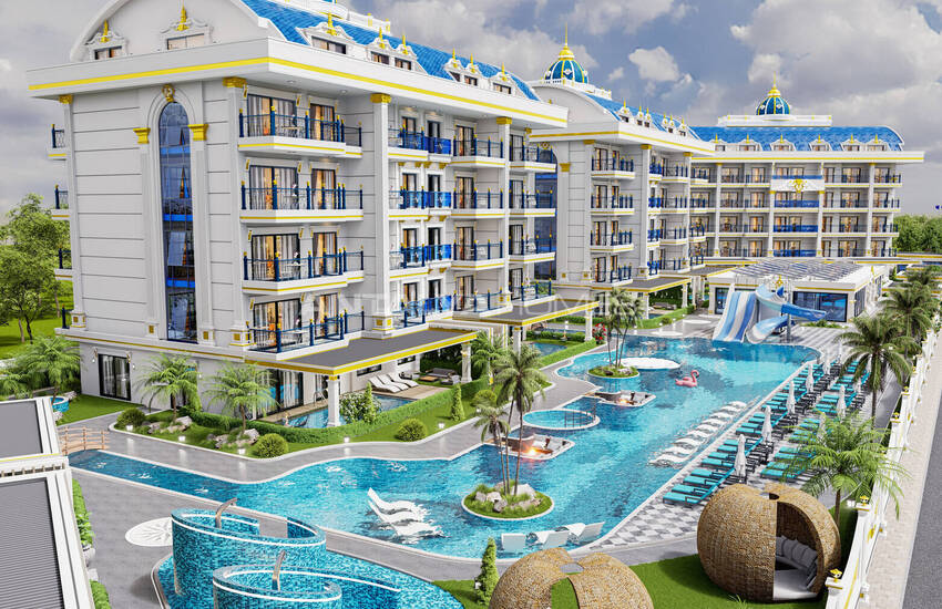 The apartments are set within a 4-block complex built on an 8,000 m² land area. Residents benefit from extensive on-site facilities, including indoor and outdoor swimming pools, an aquapark, a cafeteria, a vitamin bar, a children’s playground, BBQ areas, gazebos, a cinema hall, a PlayStation room, a music room, a mini club, a billiards room, a fitness center, massage rooms, a Turkish bath, a sauna, a steam room, a salt room, walking paths, indoor and outdoor play areas, as well as indoor and outdoor parking facilities.