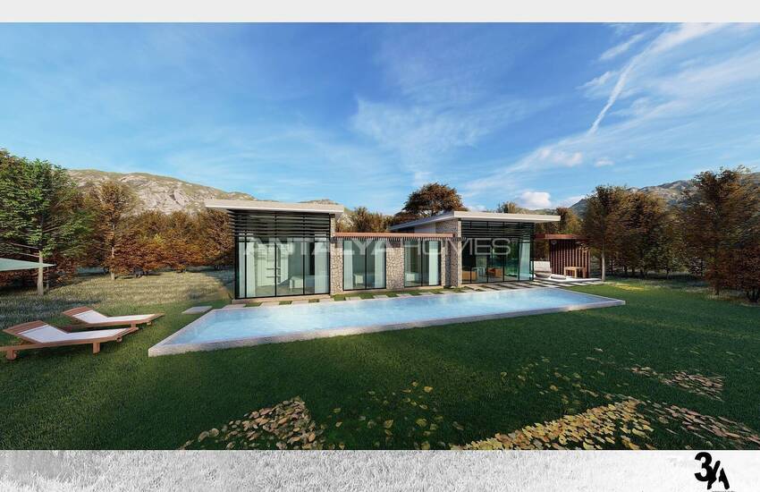 Sea and nature view villas are designed with 3 bedrooms, a living room, an open-plan kitchen, and 3 bathrooms. Luxury villas in Bodrum have an underfloor heating system, a fireplace, and a central VRF system.