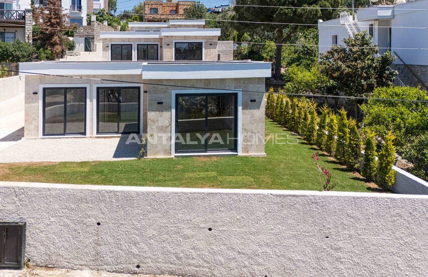 The villas for sale in Bodrum are located within walking distance of daily and social amenities. They are approximately 400 m from the beach and 2.5 kilometers from Gümüşlük. The distance to Turgutreis D-Marin is 6 kilometers, Yalıkavak Marina is 12 kilometers away, Bodrum State Hospital is 20 kilometers, Bodrum town center is 22 kilometers, and Bodrum-Milas Airport is 55 kilometers from the site.