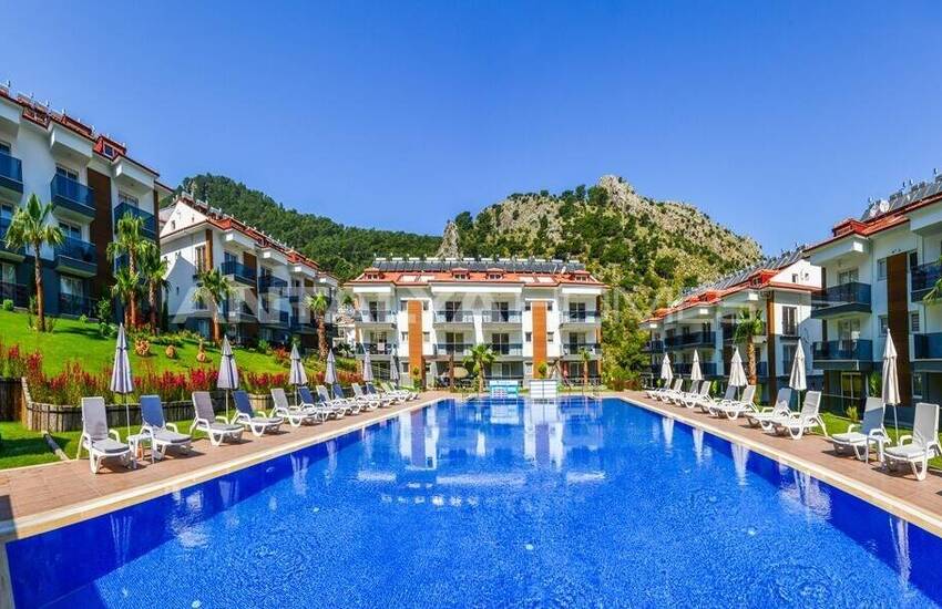 The flat for sale in Fethiye enjoys a central position, allowing easy access to essential services, major roads, and public transport. It is conveniently located 1 km from both a school and a university, 2.5 km from the mall, 3.5 km from the heart of Fethiye, 6 km from Çalış Beach, 8 km from Ölüdeniz Beach, and 49 km from Dalaman International Airport.
