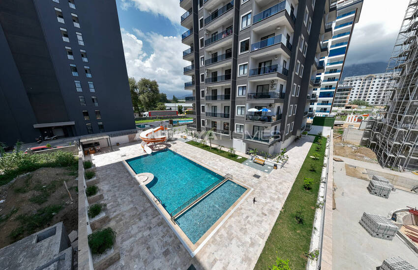 آپارتمان های فروشی در آلانیا در 650 متری ساحل، 450 متری مغازه ها، بازارها و داروخانه ها، 10 کیلومتری مرکز آلانیا، 35 کیلومتری فرودگاه گازی پاشا و 125 کیلومتری فرودگاه آنتالیا قرار دارند.