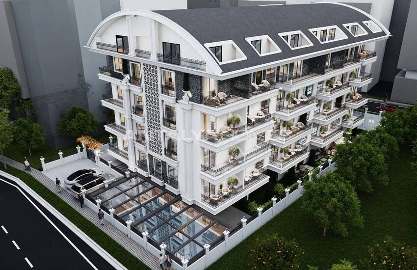 Cet appartements à vendre à Alanya se situe à 40 km de l'aéroport de Gazipașa, à 4,4 km du centre commercial Alanyum, à 2 km du château d'Alanya, à 250 m des commerces, pharmacies, hôpitaux, écoles et bazars, et à 200 m de la plage de Cléopâtre.