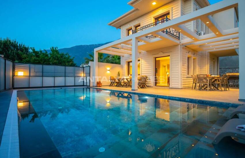 Виллы на продажу в Фетхие выгодно расположены в пешей доступности от объектов инфраструктуры и важных социальных объектов. Знаменитый пляж Олюдениз находится всего в 4 км. Долина бабочек – в 8 км, центр района Фетхие – в 9 км, а международный аэропорт Даламан – в 55 км от проекта.
