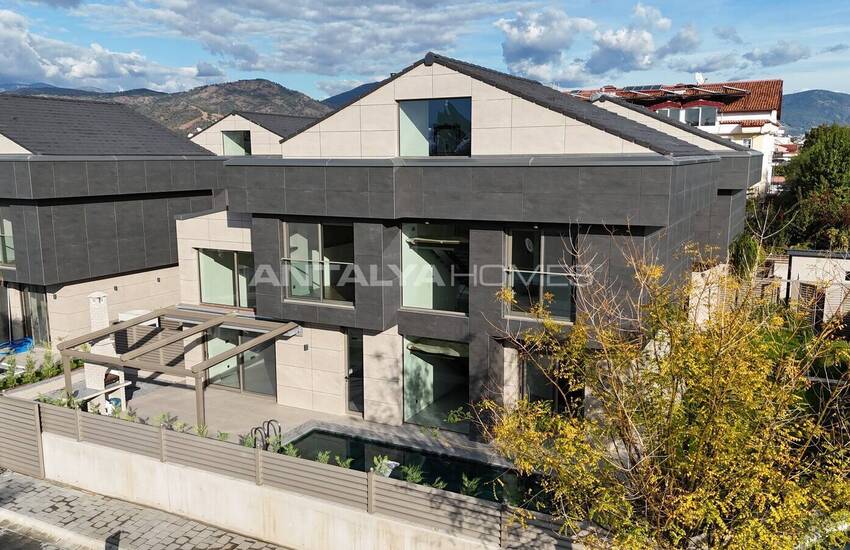 Huset innehåller 4 sovrum och 1 vardagsrum, designat med ett modernt arkitektoniskt koncept. Varje sovrum har ett eget badrum och en walk-in-closet, vilket ger avskildhet och komfort. Arkitektoniska höjdpunkter inkluderar en 5,5 meter hög trapphall, ett vardagsrum i galleristil med en takhöjd på 4,5 meter och specialdesignade inbyggda möbler. Med sin rymliga interiörlayout och raffinerade designdetaljer erbjuder detta hus en högkvalitativ och njutbar livsupplevelse på en av Fethiyes mest eftertraktade platser.