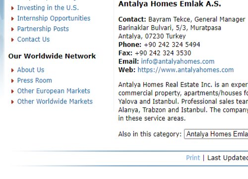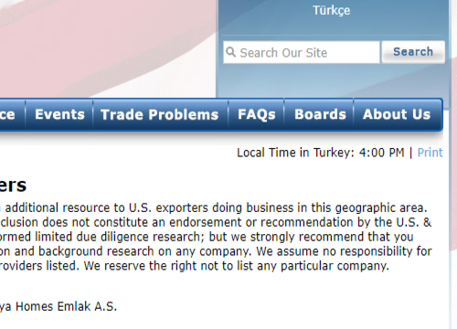 Antalya Homes ®'un www.export.gov sitesinde yayınlanan Türkiye'de Ticari Hizmet Sağlayıcıları (Business Service Providers) listesinde olduğunu duyurmaktan gurur duyuyoruz.
